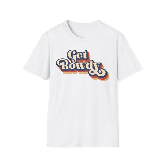 "Get Rowdy" (vintage design on black) Unisex T-Shirt in Black or White